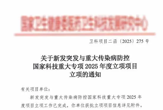 近日,国家卫生健康委医药卫生科技发展研究中心公布了关于新发突发与重大传染病防控国家科技重大专项2025年度立项项目,我院参与的9个项目(3个子课题、6个子任务)成功获批,共获1428.26万元资助,是胸科医院获得项目数和经费资助最多的一次,实现了我院在国家级重大科技专项布局中的历史性突破。
