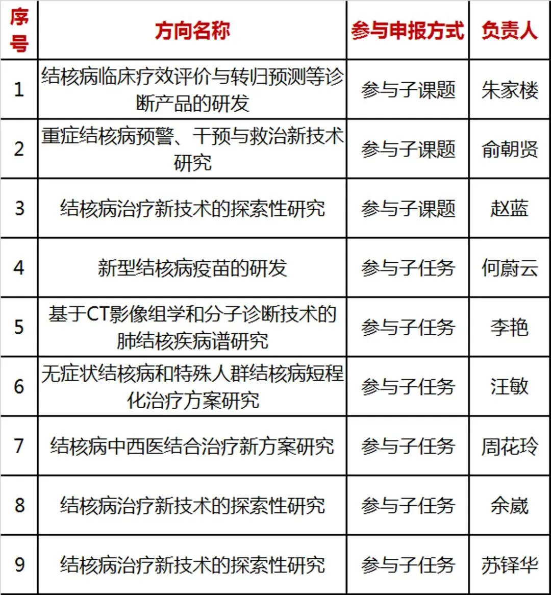 新发突发传染病防控是世界性科技难题,能够参与并承担国家重大专项的研究任务,标志着我院在重大传染病防控与诊疗领域的研究能力获得了国家层面的认可,本次参与获批的9个课题紧扣国家传染病防控战略,聚焦结核病“防—诊—治”核心环节,凝练为三大攻坚方向,反映了我院结核病救治与科研创新方面的扎实基础与团队实力。