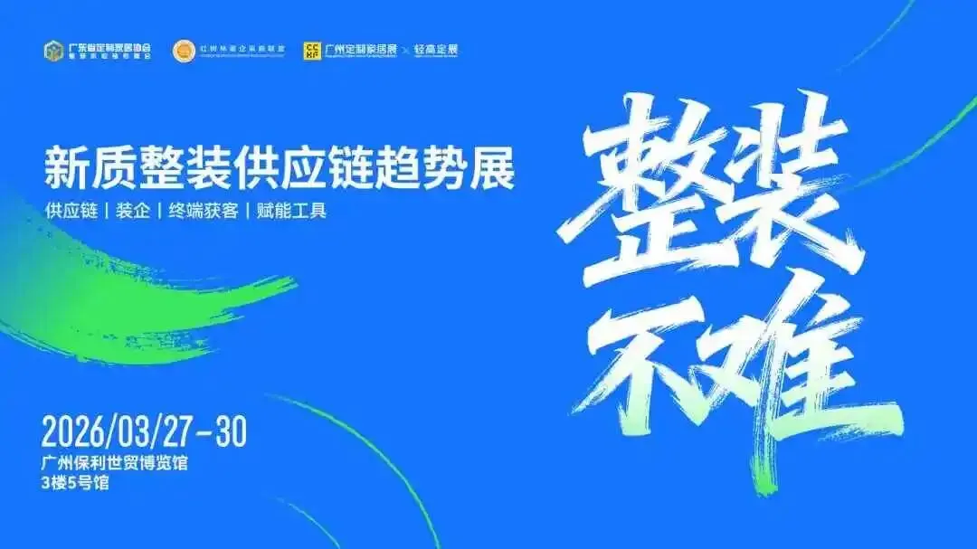 3月27-30日,2026广州定制家居展暨轻高定展将以“定制+好房子”为主题在广州启幕,活动旨在将政策导向、消费需求转化为商机与产业解决方案。