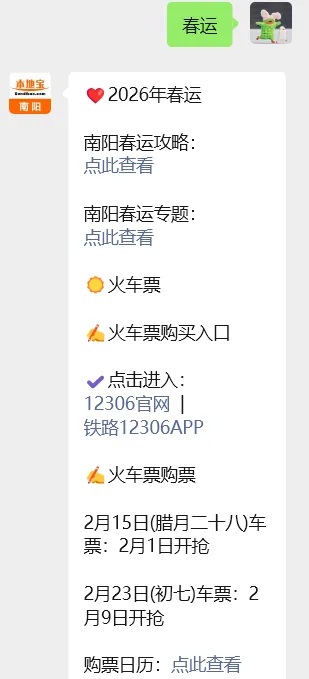 关注【南阳本地宝】聊天对话框内回复想要了解的【关键词】即可获取相关内容哦!