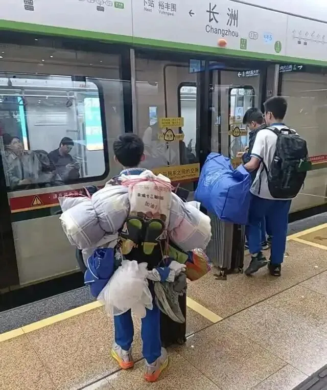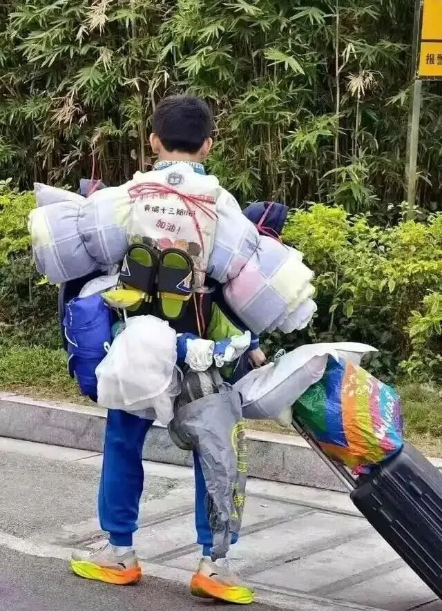 来自网络照片迅速刷屏,网友直呼:“他扛的不是行李,是未来的底气。”01