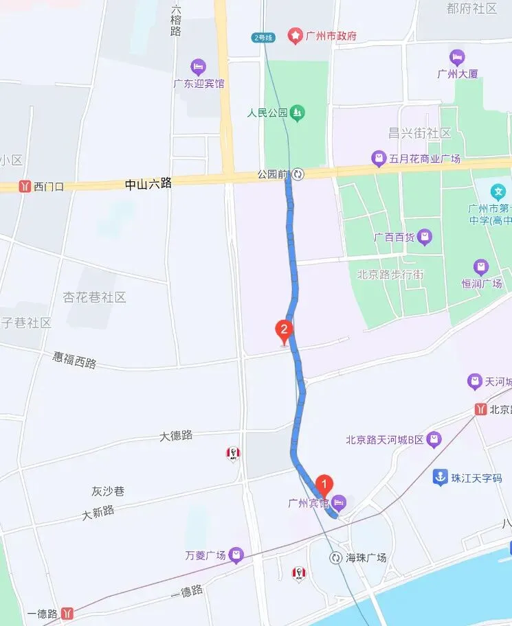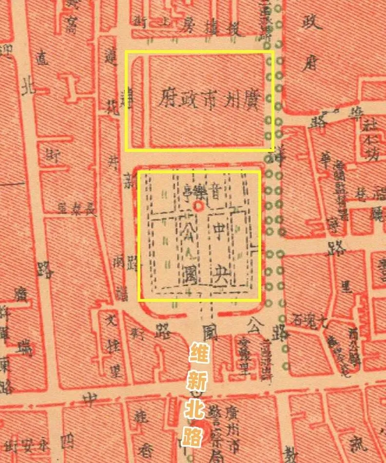 而在维新路的最北端是广州市政府和广州地标中央公园(现人民公园),极具代表性。