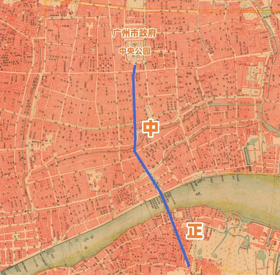 这样,广州横跨珠江两岸的南北主干道,从广州市政府中央公园为起点,一直到河南,包括连接的珠江桥梁,都以中正命名。这样,无论从气势和代表性,中正路在广州都是第一的存在。