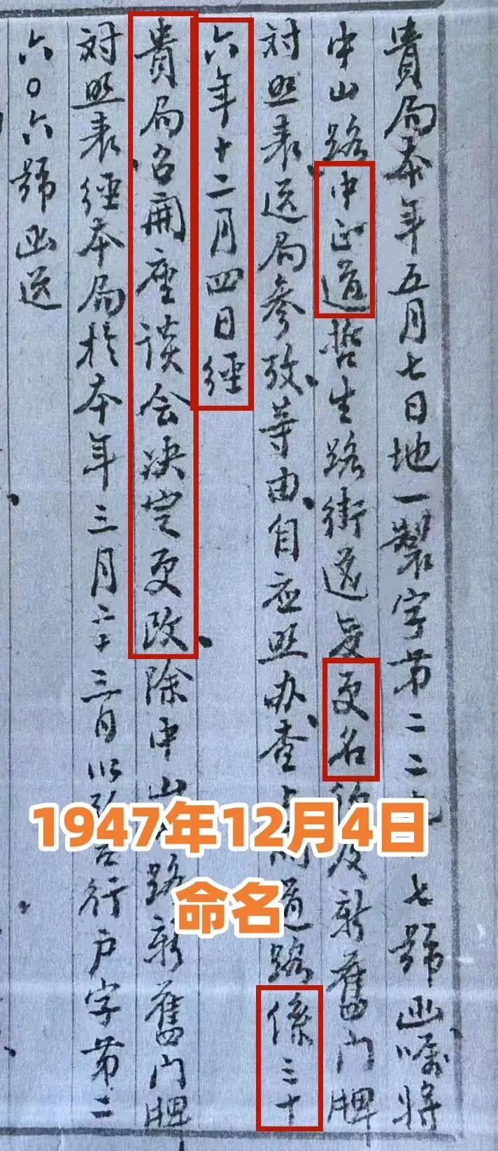 1945年12月,广州市第七次行政会议决定,在市内选择两条主要道路,改名为中山路和中正路,以纪念国父和总裁。