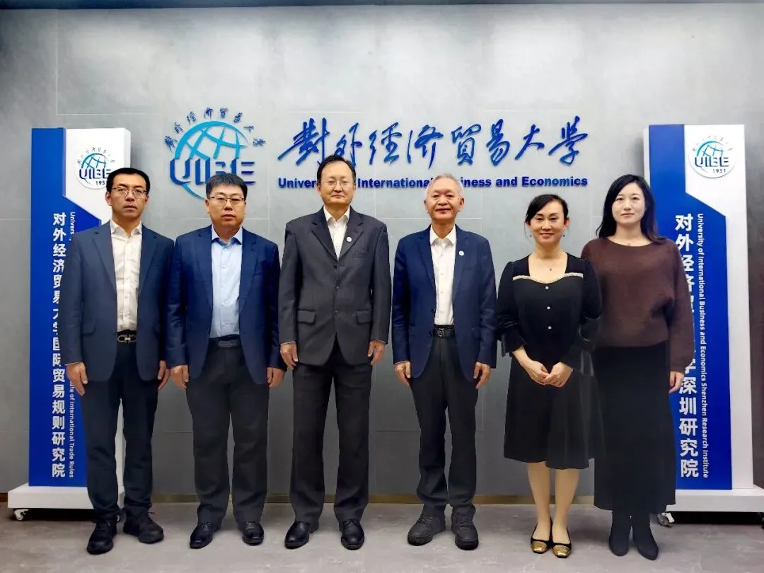 2026年1月29日下午,对外经济贸易大学党委书记黄宝印、副校长王强一行赴深圳调研交流,并到深圳研究院/国际贸易规则研究院指导工作。