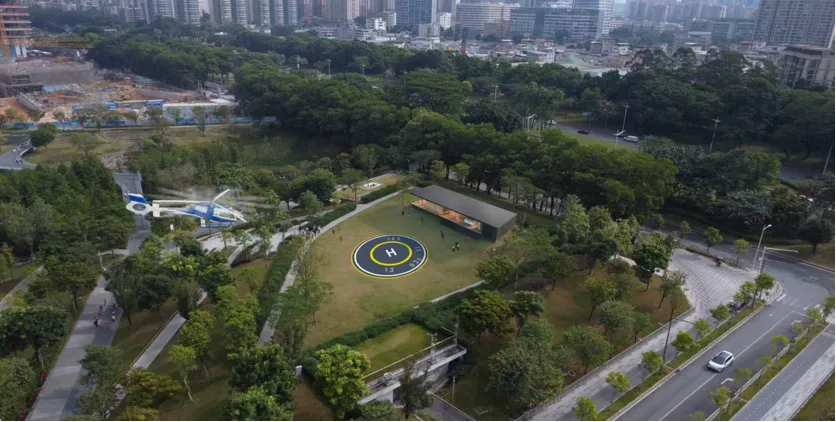 东莞中心公园起降点位于园区大草坪处,聚焦“低空+文旅观光”应用场景,东莞中心公园作为东莞CBD的城市绿心,成为市民日常休闲活动的好去处,启用后,市民可搭乘直升机,以城市核心的绝佳区位为起点,穿越解锁东莞低空文旅新体验,在空中俯瞰鸿福路口繁华商圈,也可前往东莞植物园、水濂山碧玉湖、旗峰公园等著名景点,从生态绿心到都市繁华,从 CBD 核心到城市远景,在云端之上,将城市繁华与生态盛景尽收眼底,开启一场属于东莞的空中浪漫之旅。