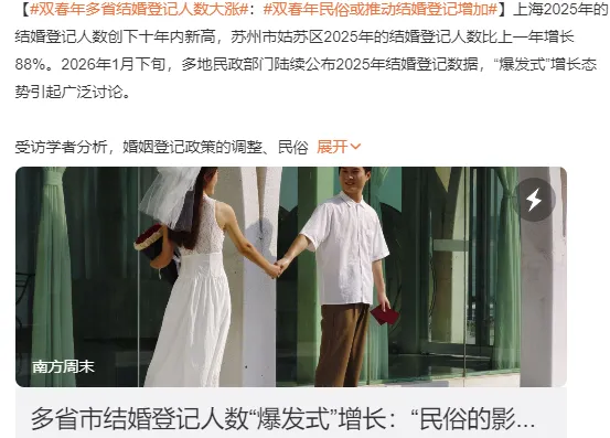 东莞市民政部门的数据揭示了增长的幅度:从2024年到2025年,结婚登记数量实现了65.4% 的跨越式增长。