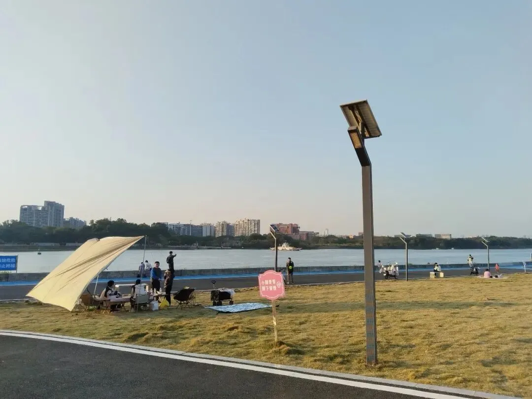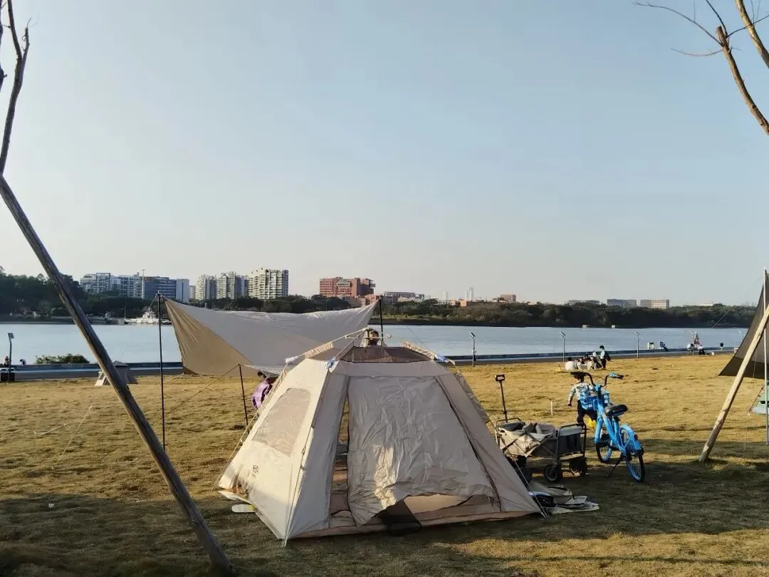 在番禺刚新开不久的滨水公园,这里人少景美,不用预约不用门票,停车方便,还有地铁直达一个人坐在江边的堤坝上,可以发呆一个下午,让自己可以得到完全的放空,心情特别舒畅这里就是曾边水闸滨水公园,一个超级舒服的江边休闲地,全天免费开放,车可以直达草坪边上,简直是为露营而生(图片拍摄于2月2日)自驾的朋友导航番禺曾边水闸,到达目的地,这里有双向8车道的免费停车场,大把车位,停靠在路边走几十米就到达大草坪乘坐公共交通的搭乘地铁4号线,到达新造站A2出口,步行500米到达曾边水闸,非常方便。这里下午4点后的太阳光很舒服,这个时候露营最舒服了,还能看到波光粼粼的江面这里不止露营,还很适合放空、遛娃、骑行、散步、钓鱼、看日落、放风筝、带宠物,想你所想的满足你想做的小孩也可以在这里放风筝,放开的奔跑,尽情地骑行,距离虽不是很长,但是骑上一圈也有2公里多的距离了喜欢钓鱼的朋友当人要挑个好位置,抛出鱼竿,享受收获的这个开心的时刻鱼钓没钓到不知道,反正螃蟹是一钓一个准,鱼钩都不用,用根树枝系条绳子,放块小肉,放到岸边的石头缝里,那是一钓一个准,哈哈喜欢骑行的朋友,也可以不用带单车,这里还有足够多的共享自行车,大家可以自行手机扫码这里大片的草坪,简直是为露营而生,每到下午的时候,就有露营爱好家庭,在这里支起帐篷,摆开桌子,享受这惬意的江边风景和日落时光这里没有自助售卖机,不过可以点外卖,也很方便,也有下午的移动汽车摊柠檬茶、咖啡卫生间的话有点不是很方便,要走几分钟的路程去到A2地铁口那边的公交站才有想要拍照片的要自带摄像师喔,拍照的要摆poss,负责拿相机的更要有好poss