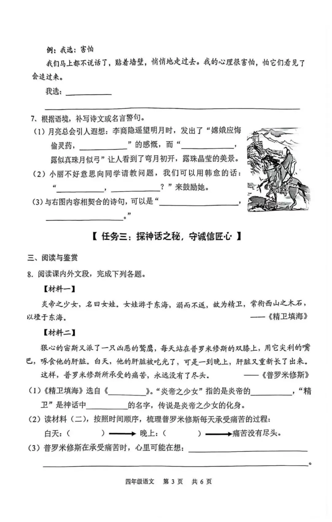 2026年深圳市南山区四年级上册语文期末试卷(第3页/共6页)