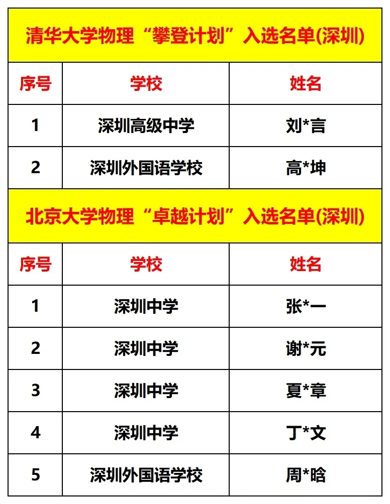 2026年清华物理攀登计划、北大物理卓越计划入选名单公布,深圳有7名学子通过这2个计划提前锁定清华北大!恭喜这些优秀学子!