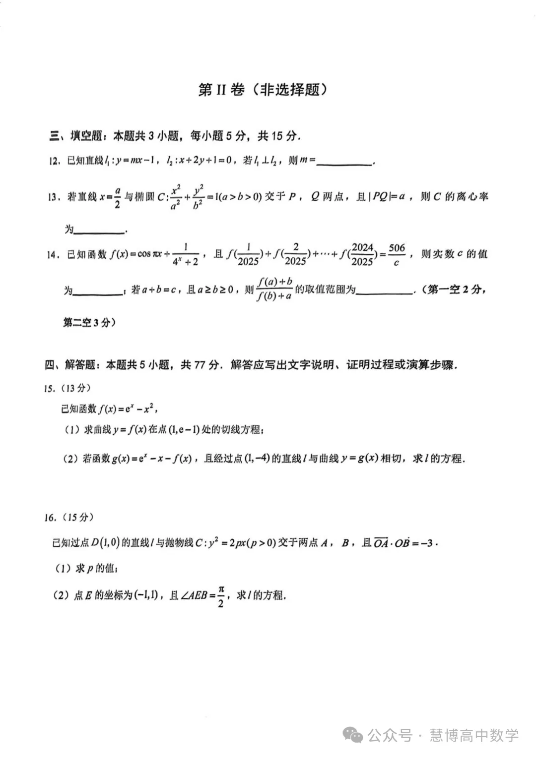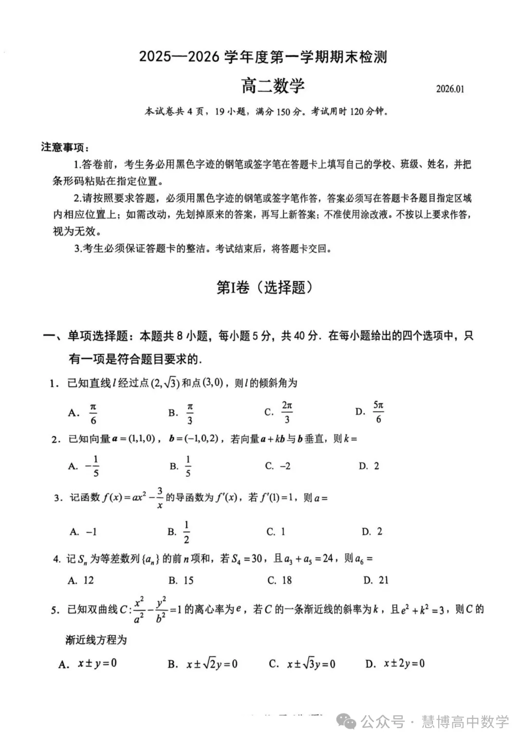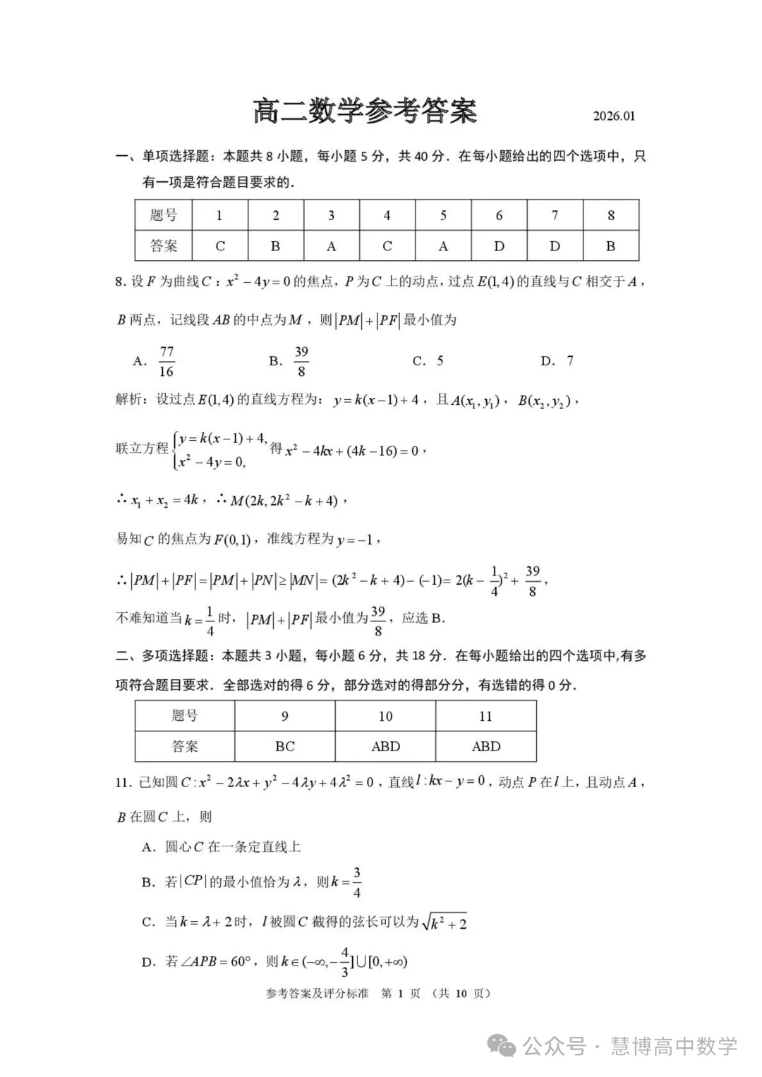 通过网盘分享的文件:深圳南山区2025~2026学年高二上期末数学试题+答案
