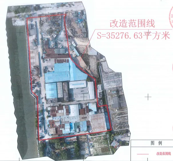 改造单元总面积为3.53公顷,其中拆除区范围面积2.50公顷,生态修复区0.96公顷。单元内现状均为旧厂房,地上建筑物总面积7339.51平方米。