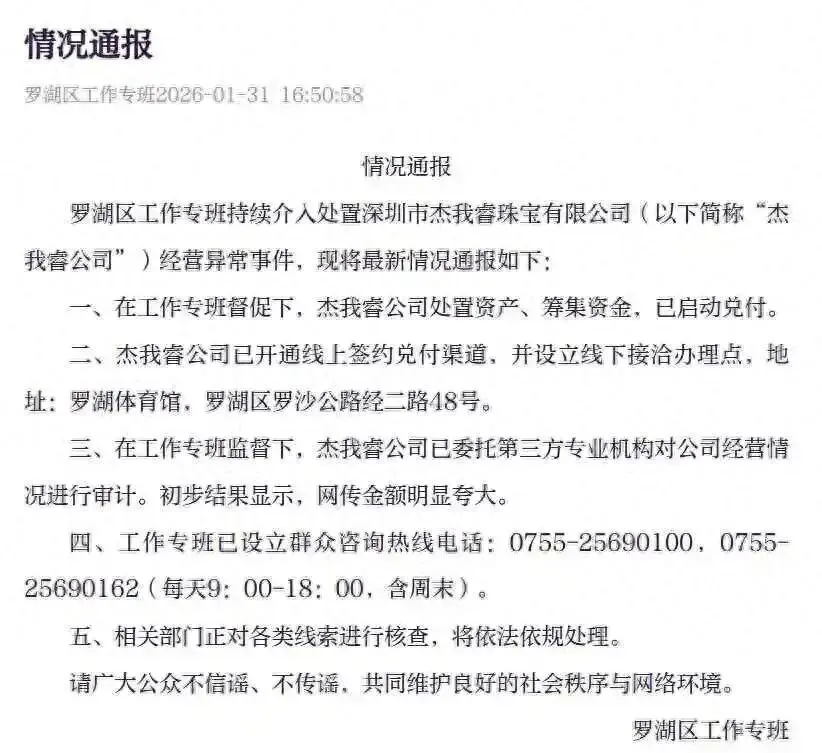 罗湖专班1月31号发通报,说请了第三方审计,网传130亿是假的。但没说到底有多少,也没说审计包不包括那些没实物支撑的“预订价”订单。有律师讲,20块钱锁1克黄金,涨跌都算,这根本不是卖金子,是炒期货,可它没牌照。