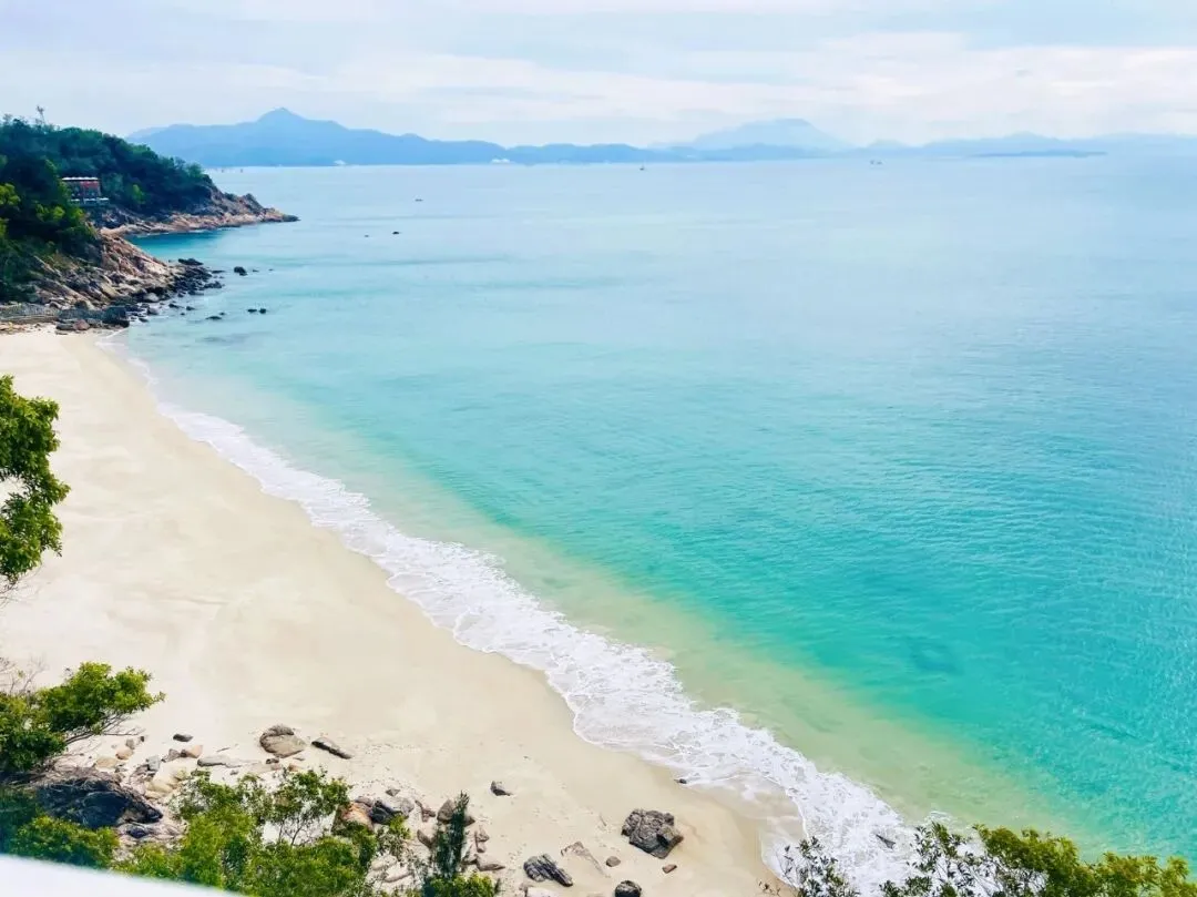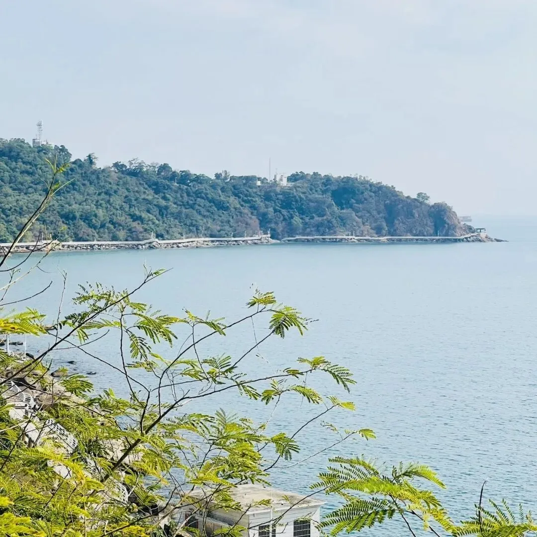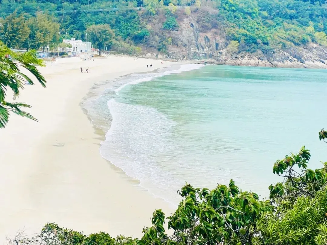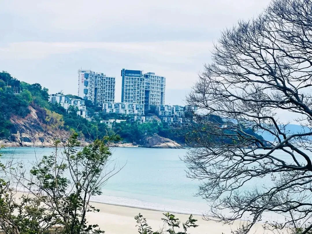 不同于热门海滨的喧嚣,溪涌的海岸线静谧而舒展,深圳“山海连城”的肌理在此清晰可见:左侧是郁郁葱葱的山林,植被繁茂得能听见鸟鸣虫吟,呼吸间满是草木与海盐混合的清新;右侧是波澜不惊的大鹏湾,风不大,仅能看见微波轻漾时泛起的细碎金光,海浪拍击礁石的声响柔和得像自然的白噪音,完全不会打乱徒步的节奏。