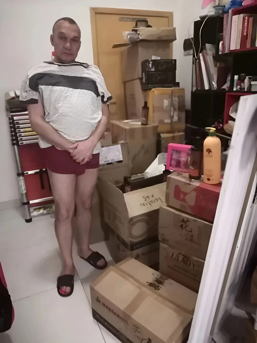 我去看纸箱上面的收寄栏,大多是广东省内寄来的美容、美甲、美发产品,我纳闷了:一个三大五粗的男人,买这些东西干嘛?平时也不见他拆封,往脸上拾掇。