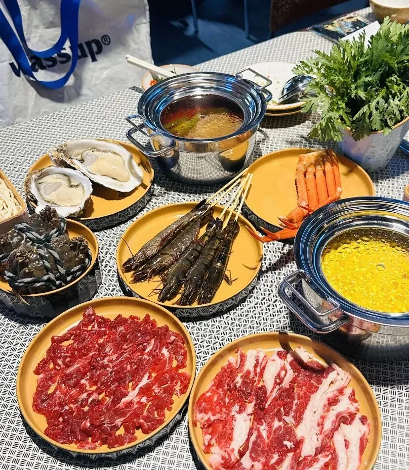 最绝的是它的开放式加工自选区海鲜池里的鲍鱼、虾蟹都是活蹦乱跳的,师傅现场捞起、处理、摆盘,整个过程透明可见,“新鲜”二字直接写在脸上,锅底有9种口味可选,价格只要12元,食材丰富到离谱,从海鲜到肉类、蔬菜,你能想到的火锅食材几乎都有,而且价格亲民,花同样的钱能吃到更多品类!