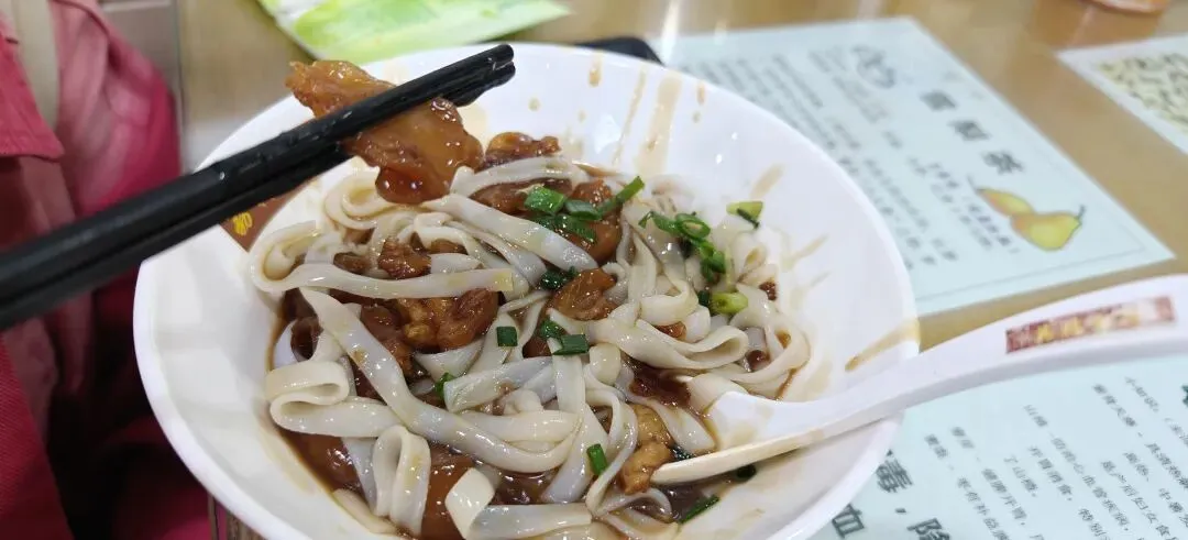 下一步解决午饭问题,往回走不远,有家网红店荔林食店,点了三碗面和一碗汤,味道不错,三个人都吃完了。