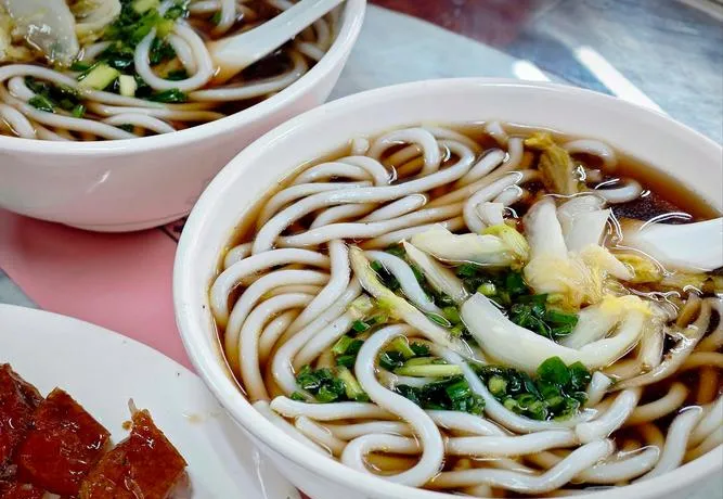 早上,得先来碗濑粉。在桥东老街那家"阿婆濑粉",汤头鲜,肉丸弹,葱花现切。粉不多,刚够醒胃。