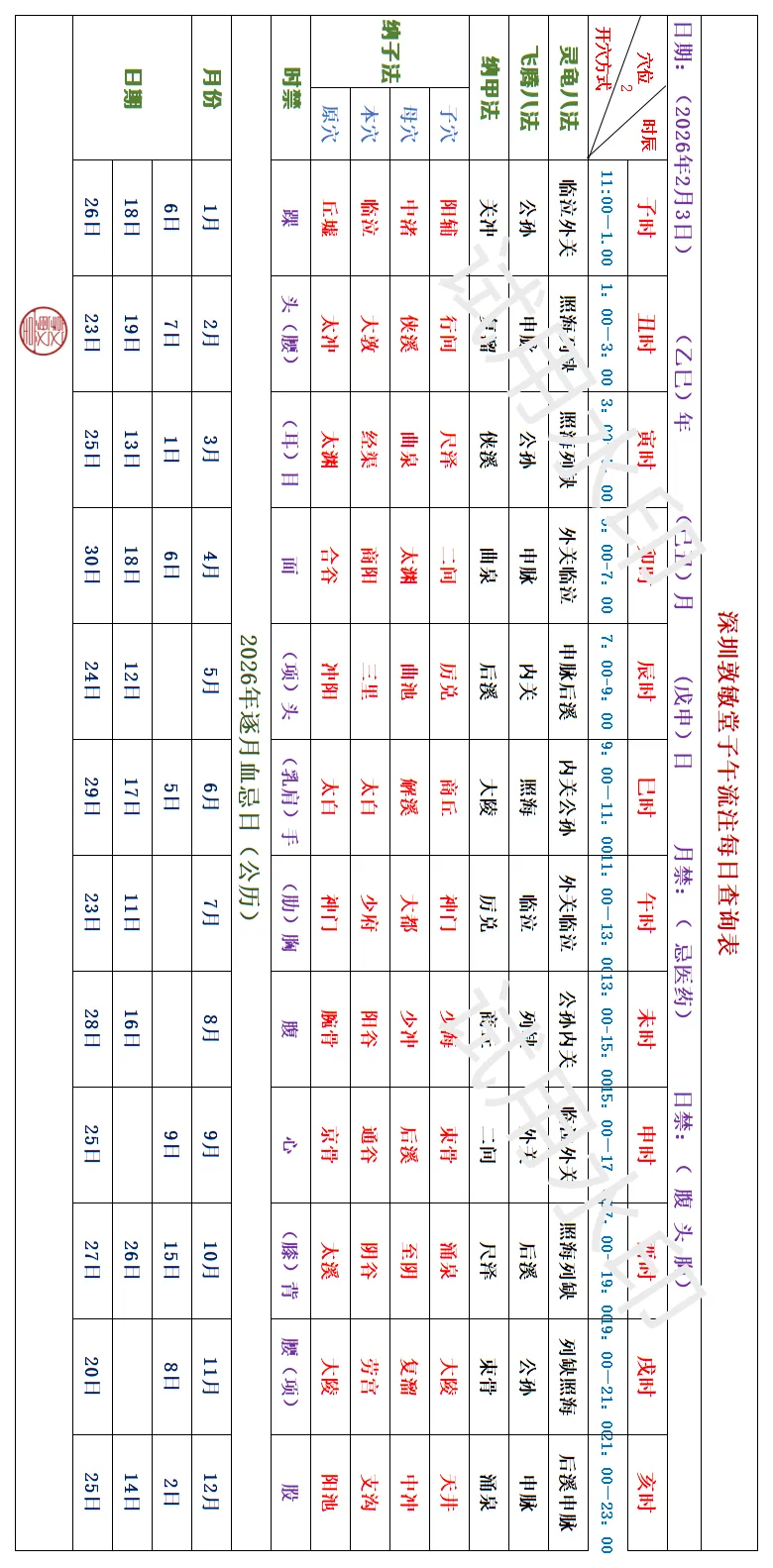 深圳敦敏堂《子午流注:今日开穴》 2026 2月3日