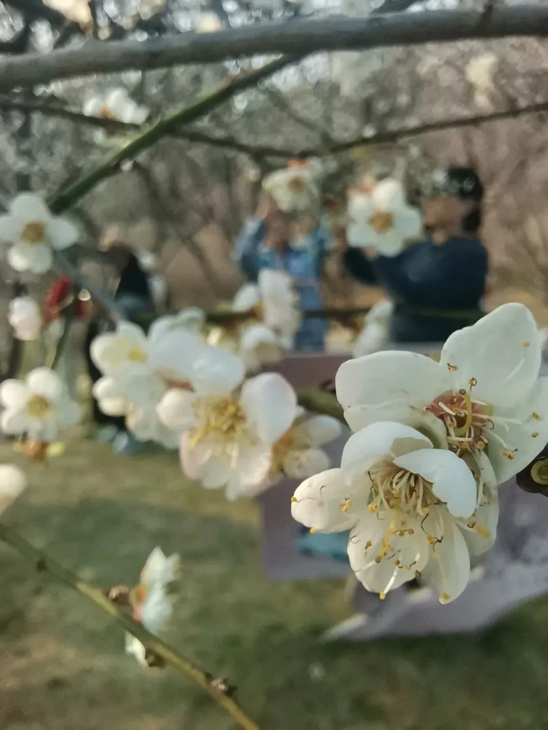 也有像我一样的普通人或拿起手机,或靠近枝头,欣赏满园的梅花