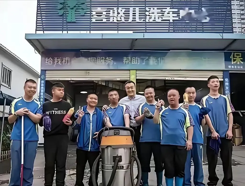如今,曹军依旧坚守在喜憨儿洗车行,头发已经添了不少白发。他既当老板,又当“大家长”,而他的儿子,现在已经能独立洗车、正常交流,还能帮着打理店里的小事。