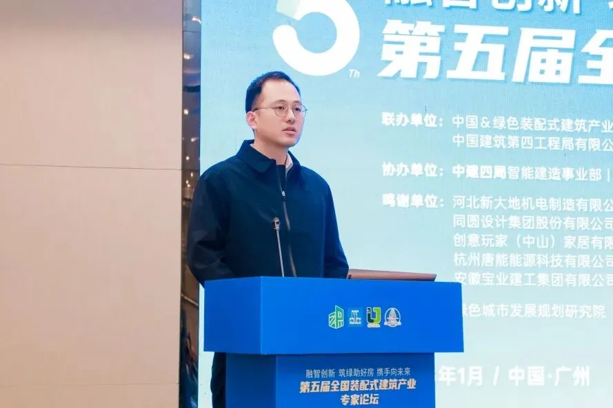 中建四局工程技术研究院副院长桂峥嵘分享了中建四局在模块化建筑(MiC)产品研发与创新实践方面的成果,展示了多项已成功应用于实际项目的技术案例。据悉,中建四局自主研发的框架式模块、预制剪力墙式模块、叠合剪力墙式模块三大产品体系具有结构性能等同现浇、70%以上工序工厂前置、现场工期缩短50%以上的优势,以及全生命周期固体废弃物排放减少75%、人力节省70%的绿色效益。