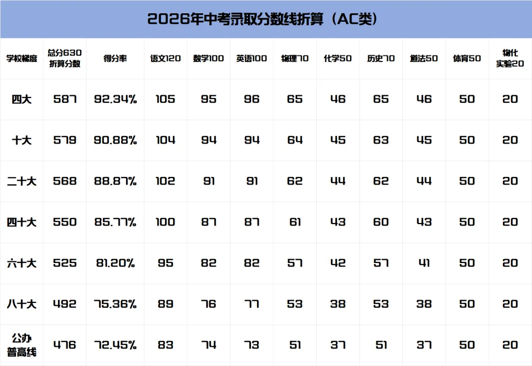 适应性考试后定位等级线,关键在于明确:等级线并非固定分数,而是按考生排名比例划定的。2026 年深圳中考总分将从 610 分调整为 630 分,但等级划定的比例保持不变。以下是 2026 年深圳中考的等级线概况:
