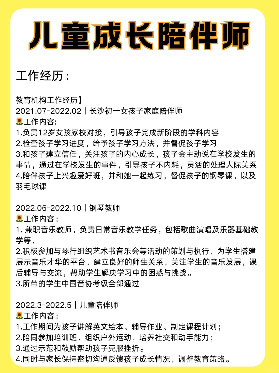 👉懂心理有耐心:有多段陪伴经历,特别擅长引导孩子,家长反馈100分