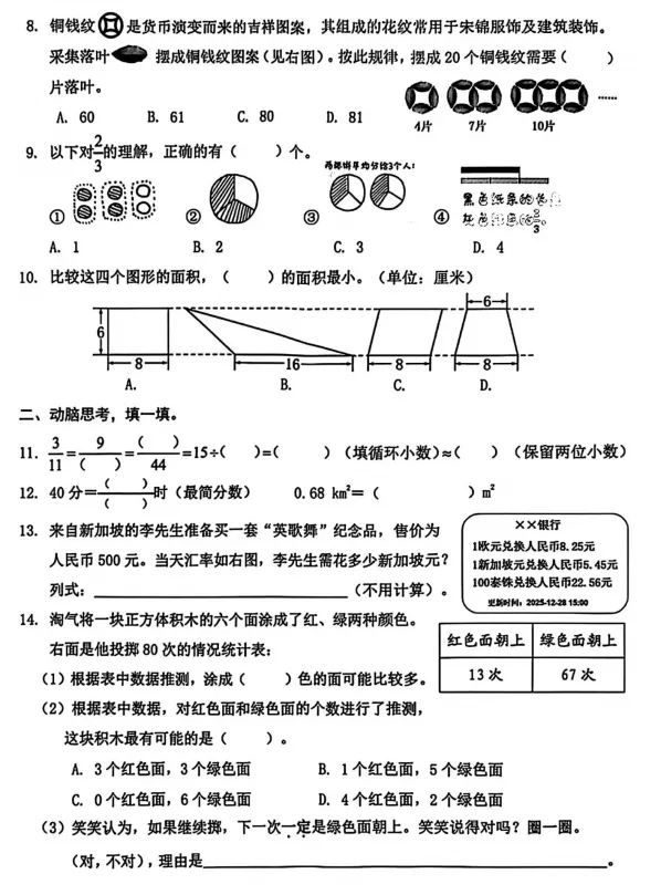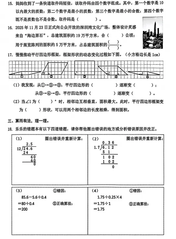 2026年深圳市南山区五年级上册数学期末试卷(第6页/共6页)