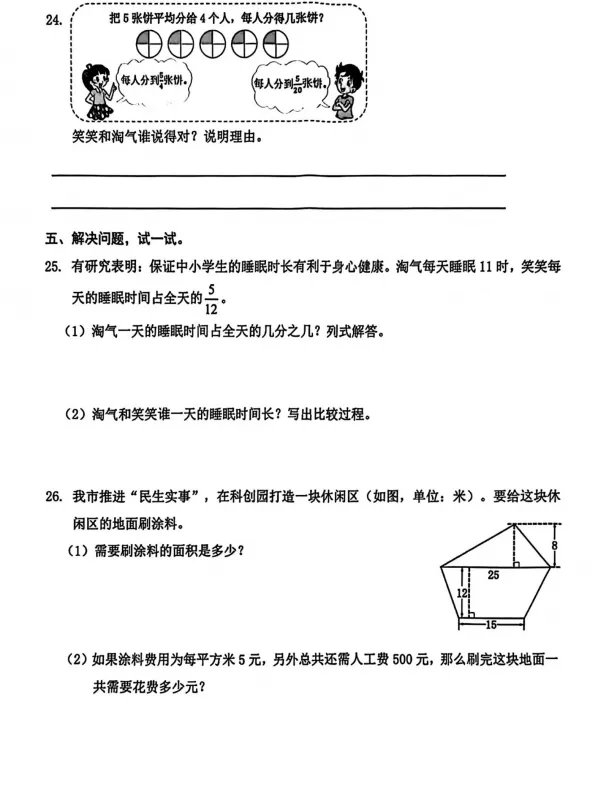 2026年深圳市南山区五年级上册数学期末试卷(第5页/共6页)