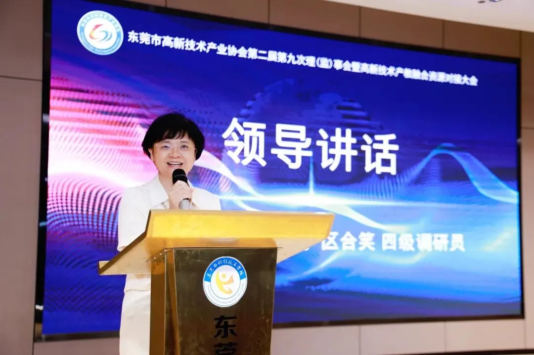 市科技局四级调研员区合笑出席并发表讲话,她充分肯定协会过去一年的工作成效。在高企培育申报、科技型中小企业评价等工作中,协会助力东莞高新技术企业数量增长至10300多家,位居全省地级市第一、全国第十一,推动相关单位荣获省科技进步奖一等奖。当前,东莞聚焦高质量发展,以科技创新引领产业升级,市科技局围绕市委、市政府部署,大力实施高企培育重点工程,从政策扶持到资源整合,为企业发展提供全方位支持。针对协会未来工作,市科技局提出四点期望:一是在高企培育与产业升级方面,要配合推进高企“量质双提升”工程,深入企业开展政策宣贯和申报辅导,引导企业加大研发投入,推动传统产业转型和新兴产业发展;二是在产教融合领域,积极搭建校企合作平台,促进人才培养与技术研发深度协同,实现教育链、人才链与产业链、创新链有机衔接;三是加强行业调研,深入企业一线掌握实际需求,形成高质量报告,为政府决策提供依据;四是协会还需强化内部管理,创新服务模式,提升服务能力,加强品牌建设,吸引更多优质企业加入,提升行业影响力。区处希望协会继续发挥引领作用,为东莞建设“湾区创新高地、制造强市”贡献力量。
