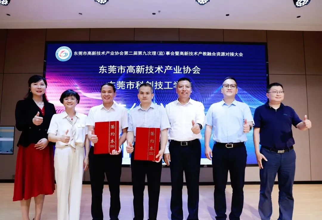 为贯彻国家创新驱动战略及省市高质量发展部署,2025年6月11日下午,东莞市高新技术产业协会(以下简称“协会”)在东莞市科创技工学校举办第二届第九次理(监)事会暨高新技术产教融合资源对接大会。活动以“产教融合,新品展示”为核心,推动产业链与创新链深度融合,通过开展工业设计与技术经纪工程技术人才职称评价专题宣讲,旨在促进产业和教育合作融通,校企联合在人才培养、科学研究、科技服务等方面协同合作,促进教育链、人才链与创新链、产业链有机衔接,实现教育与产业同频共振,学校与企业共赢发展,提升协会服务质量,为东莞市高质量发展添砖加瓦。