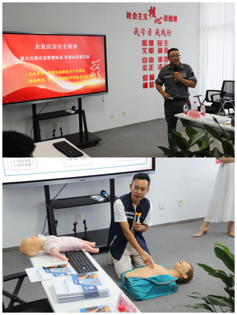 六是为帮助企业提高消防安全工作意识,强化企业消防安全管理,遇到突发情况时,如何做好急救处置,7月4日上午,协会举办消防安全及急救处置培训,为东莞市高新技术企业高质量发展提供更坚实的消防安全保障。广东川晟消防环保技术有限公司、东莞全民安全生产培训有限公司、协会会员单位等40多人出席活动。