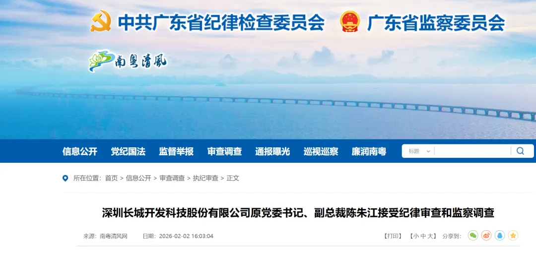 据中央纪委国家监委驻中国电子信息产业集团有限公司纪检监察组、广东省纪委监委消息:深圳长城开发科技股份有限公司原党委书记、副总裁陈朱江涉嫌严重违纪违法,目前正接受中央纪委国家监委驻中国电子信息产业集团有限公司纪检监察组纪律审查和广东省深圳市监察委员会监察调查。