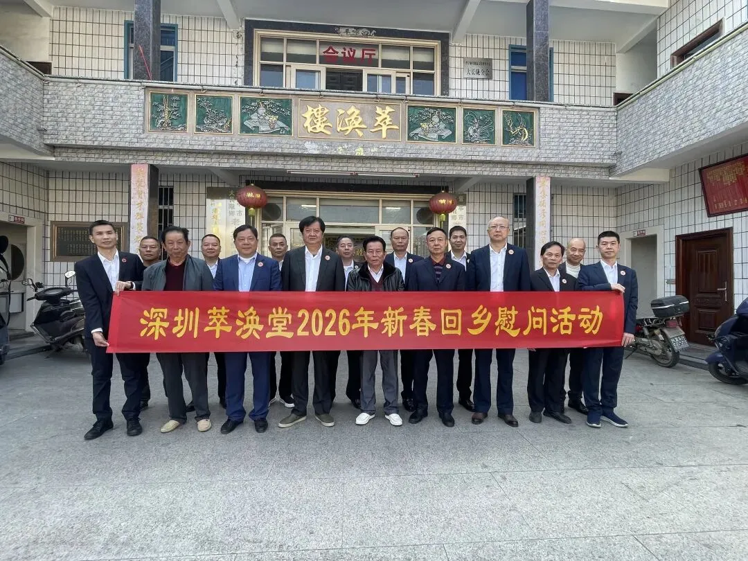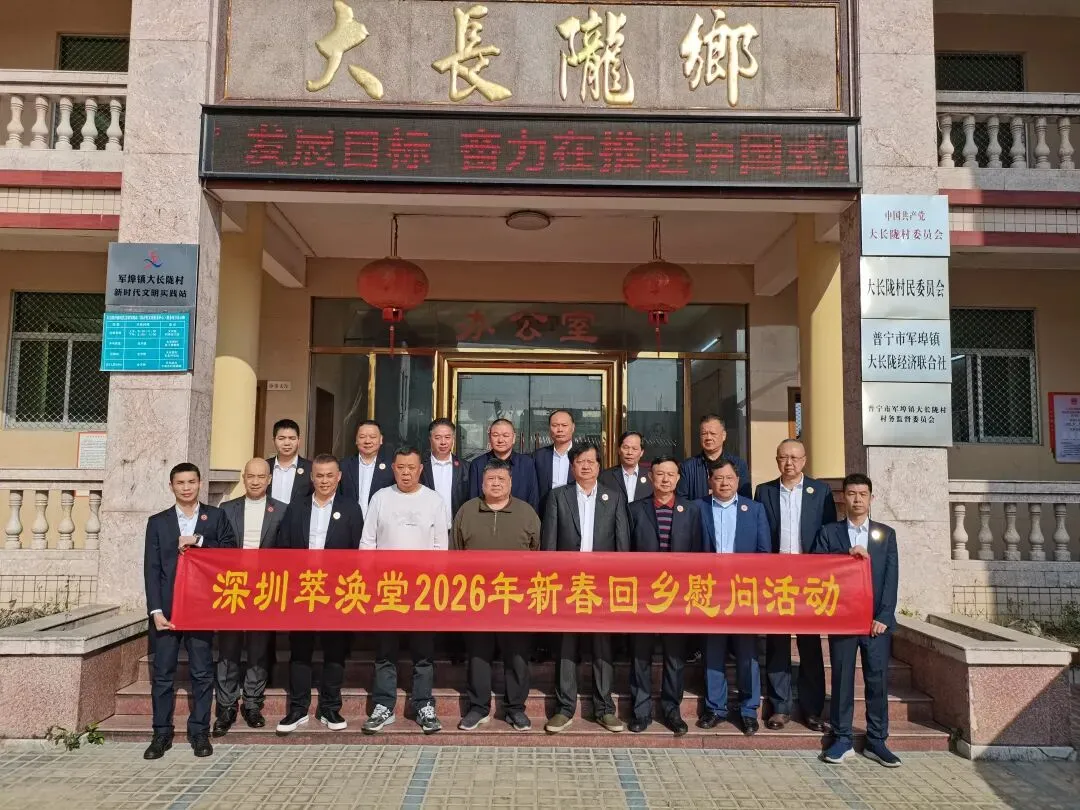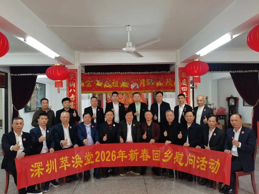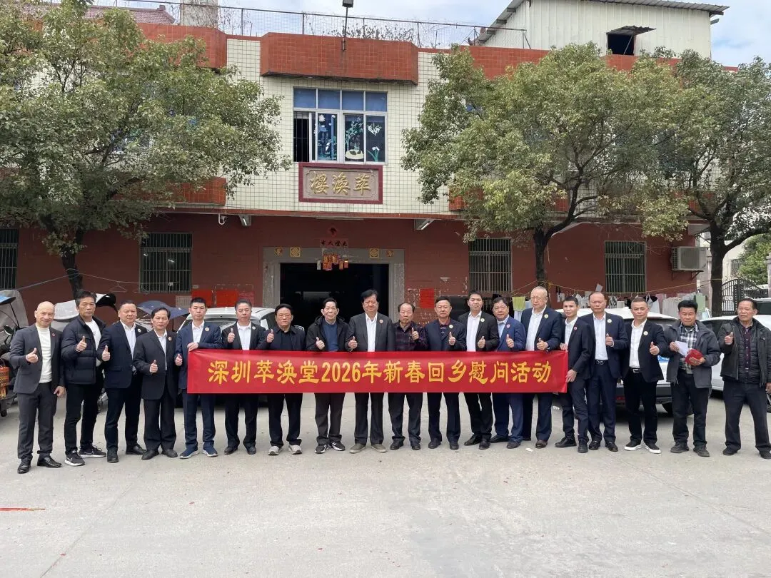 2026年1月24日至25日,深圳大长陇萃涣堂在陈松明会长的率领下,与陈建武永远名誉会长、陈永森秘书长、陈成大副秘书长,及陈阳昭、陈成锦、陈俊光、陈辉哲、陈伟生、陈亿林、陈昌奇、陈镇钦、陈伟升九位常务副会长,共同组成新春返乡慰问团,带着对家乡的深厚情谊与新春祝福,走访了大长陇两委、萃涣堂理事会、华林片区、军老片区及流沙萃涣堂等多个家乡单位。本次慰问活动旨在践行“尊老爱乡、情系桑梓”的创会宗旨,通过实地走访、座谈交流等形式,与家乡亲人们共话发展、共叙乡情。