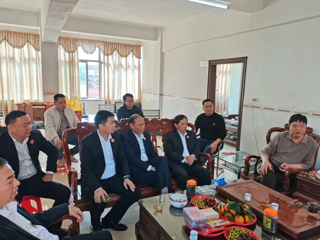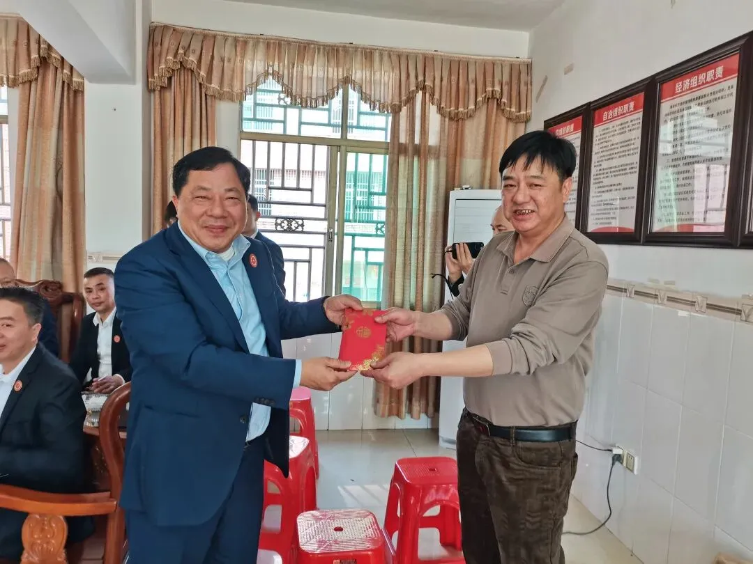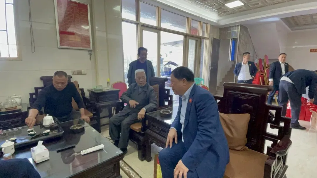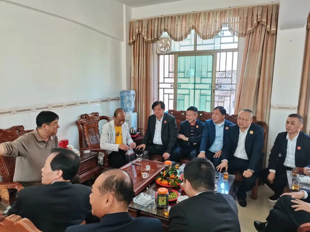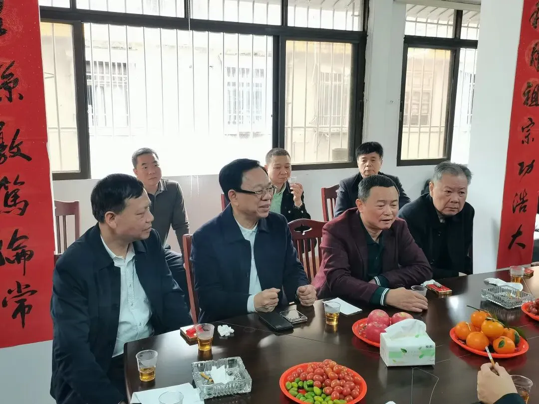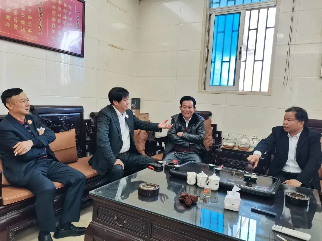 1月24日上午,慰问团首先抵达大长陇村委会,受到村党支部书记陈金溪等家乡领导的热烈欢迎。座谈会上,陈松明会长代表深圳萃涣堂向家乡亲人们致以诚挚的新春祝福,并介绍了2025年赴河南寻根、往泰国联谊的交流成果。他表示,深圳萃涣堂将持续发挥桥梁作用,促进家乡与海内外宗亲的互动合作。