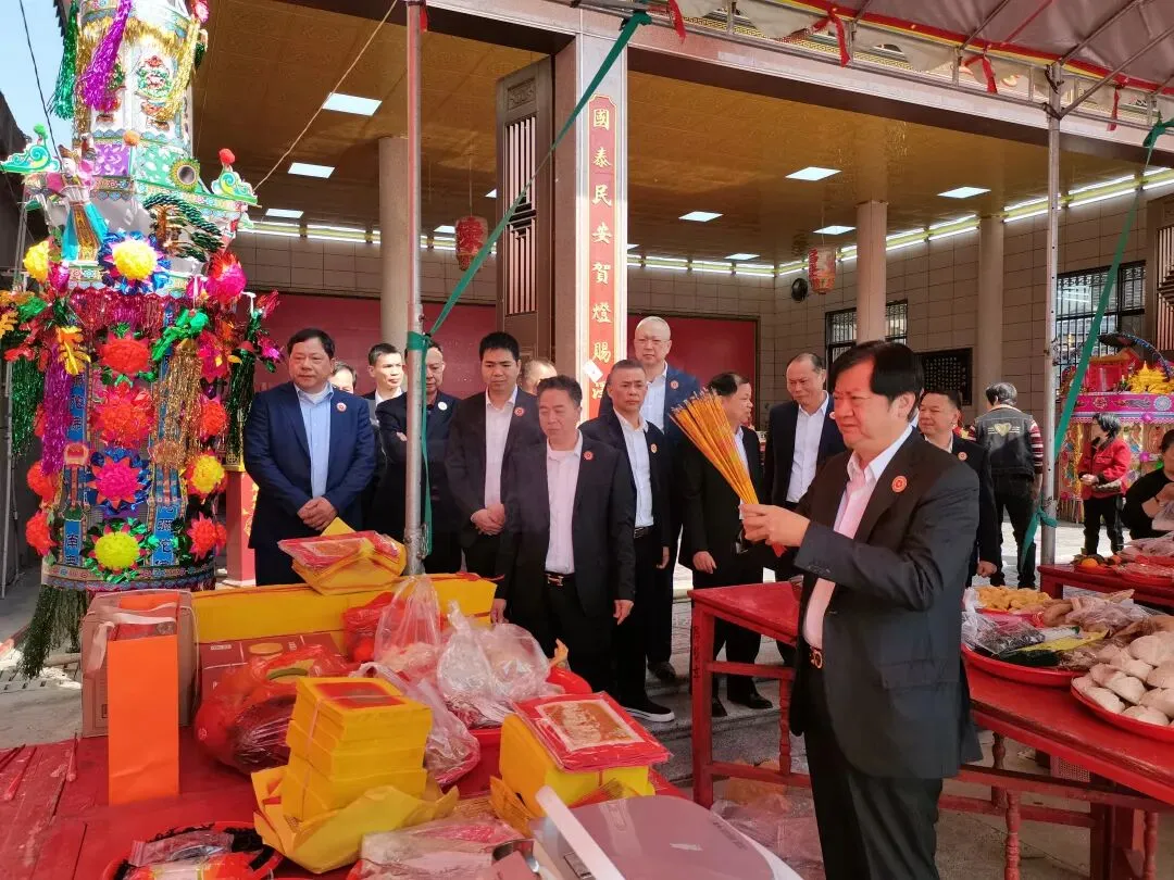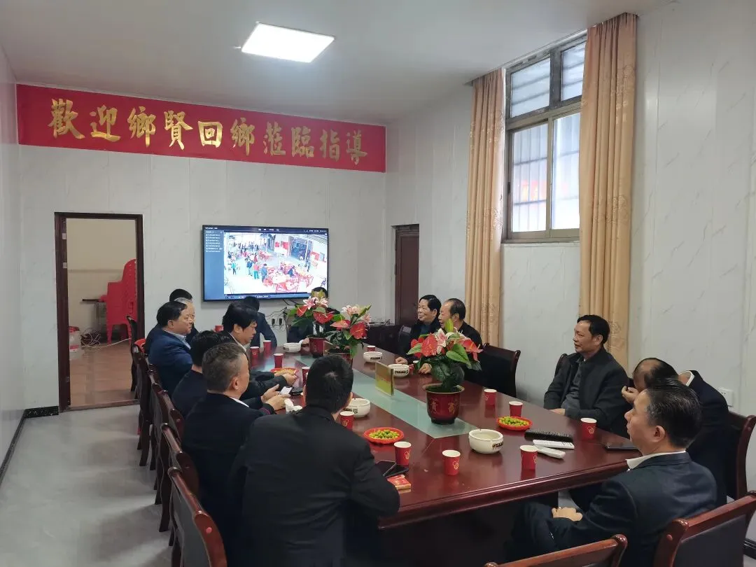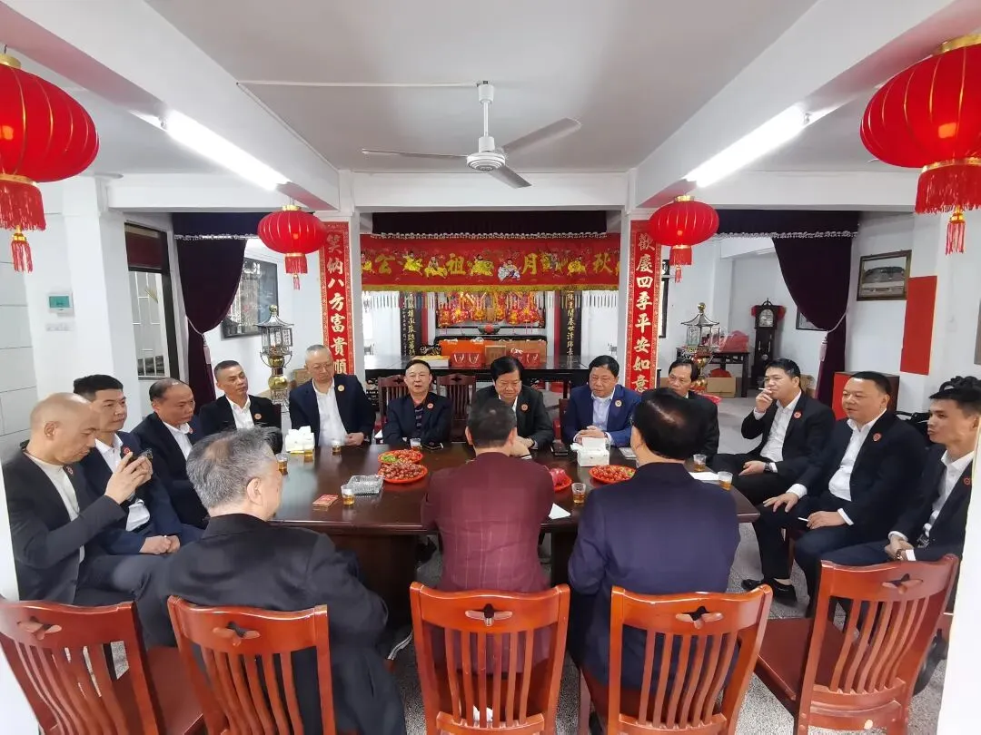 随后,慰问团一行前往萃涣楼拜访大长陇萃涣堂理事会。陈钟祥会长介绍了家乡萃涣堂连续十年为大长陇中学教师发放生活补贴,以切实行动传承尊师重教之风;并分享了孤圣大士老爷庙重建竣工的喜讯。慰问团还参加了家乡年终酬神活动,以传统仪式表达对家乡的美好祝愿。