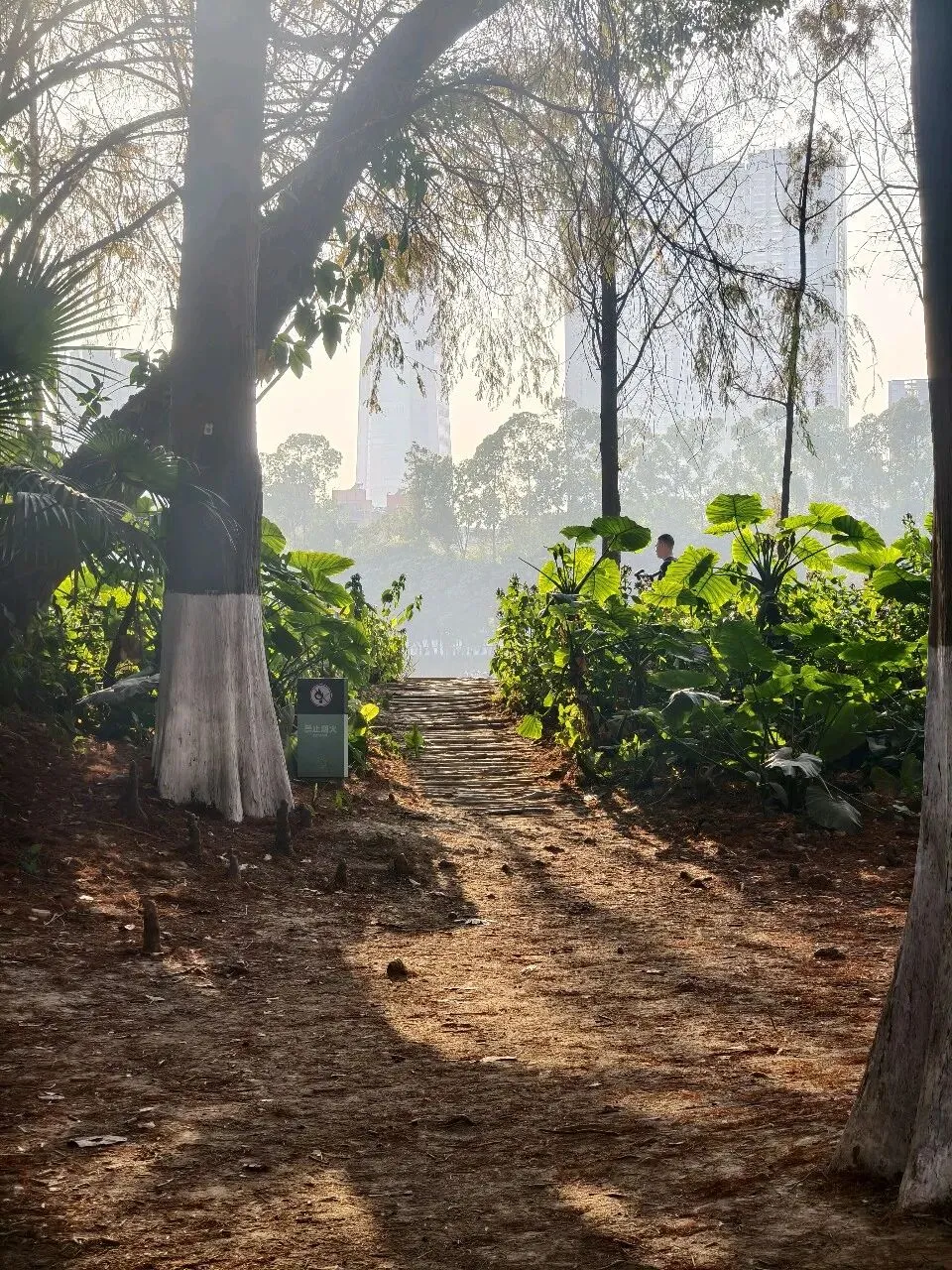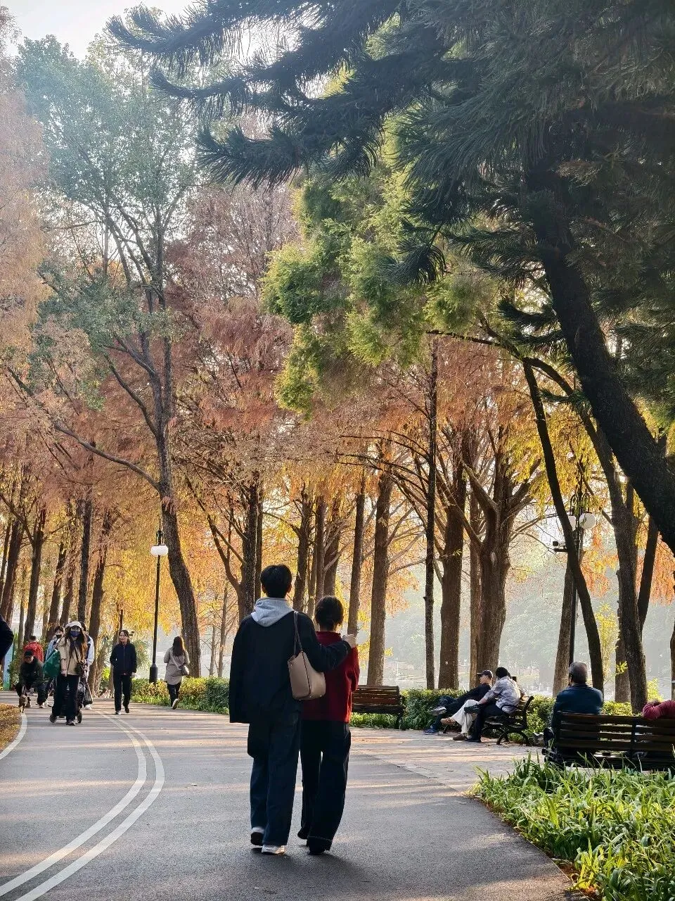 林间人不多,不拥挤、不嘈杂,阳光被高耸的杉树遮挡,无法直射进来,虽有几分阴凉,却绝不阴森,反而多了几分静谧与温柔。