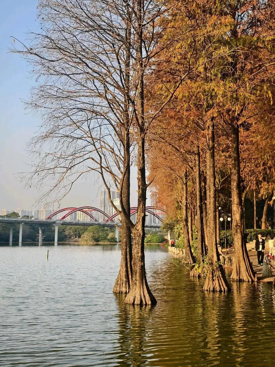 晚上和伙伴聚餐吃烤肉,闲聊着周末去哪儿散心时,孩子突然抬起头,认真地说:“妈妈,周末你上课的时候,我和小伙伴去洪湖打羽毛球,看到那里的落羽杉了,特别好看。上次没去成,这次我带你去。”