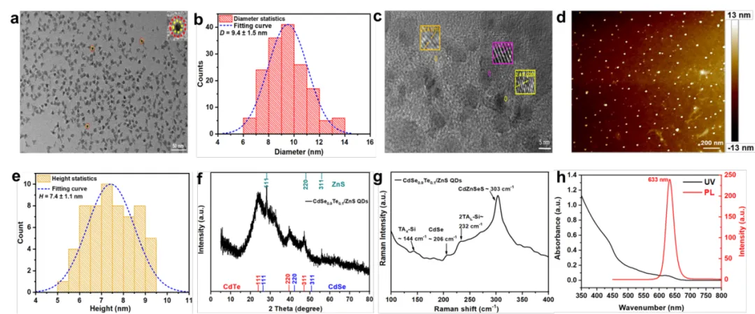 图1.CdSeTe/ZnS核壳量子点表征。
