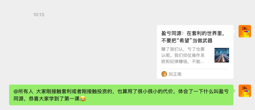 双号分工:本号(正南同学)主要写我的投资思路和日常体会。小号(刘正南)分享“每天工作5分钟月入7400”的套利实操。这里聊道,那里聊术。 欢迎大家两边都关注,如果我的文字能让你少走弯路,那我会很开心。