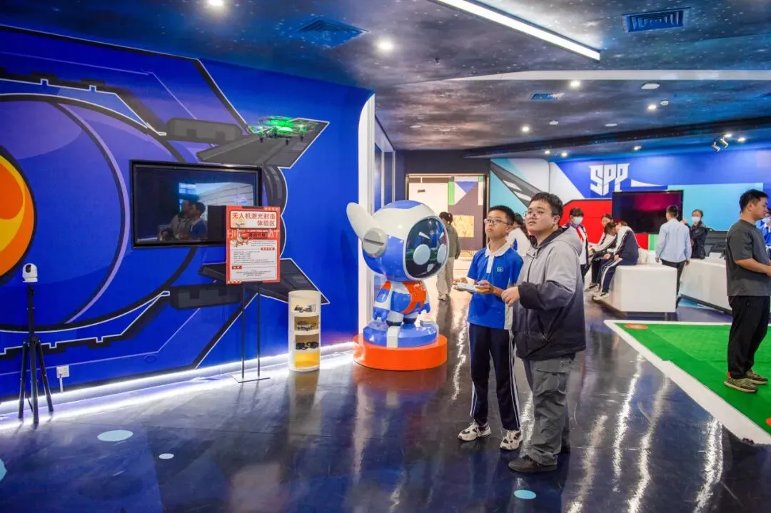 深实验·园岭少年军校将国防教育场景融入整体设计,精心构建了多元体验区域,真正实现“科技+传承”的深度融合,让国防教育走出课本,走进少年心中。福田区国防教育主题公园作为少年军校的“校外活动基地”,紧邻我校中学部,集9·3阅兵装备模型、国防知识长廊、军事文化教育、以武止戈军事文化墙绘、模拟军事障碍场、无人机随机解说于一体,为队列训练、军事知识科普、模拟实践等活动提供专业场景,实现“校内课程+校外实践”的教育闭环。