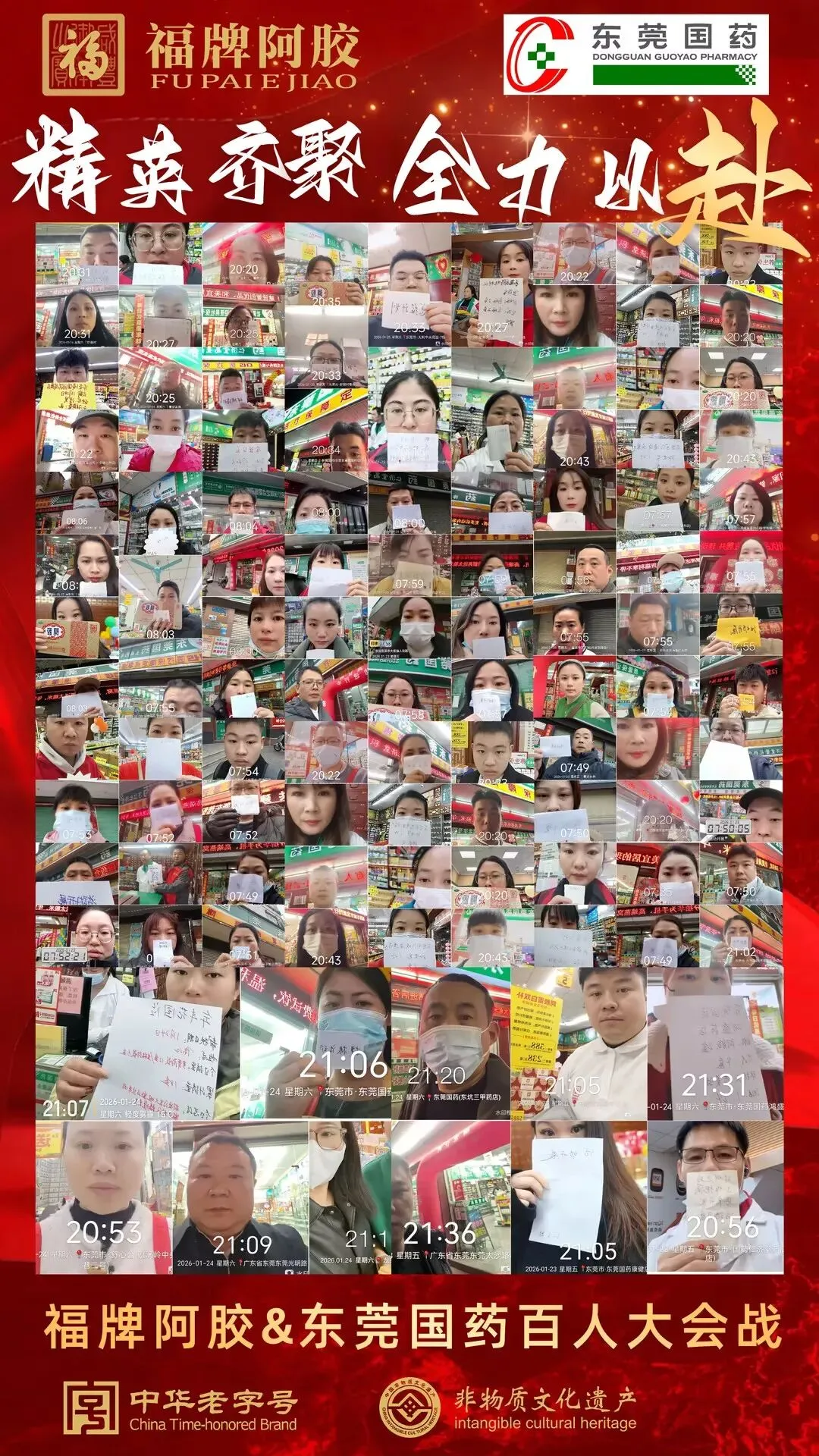 福牌阿胶与东莞国药充分发挥各自优势,共同策划并落地了此次“百人百店大会战”。活动聚焦门店终端,通过集中资源、统一行动,在东莞国药旗下百家门店同步开展推广体验、健康咨询与促销活动,形成强劲的市场声量与终端攻势。