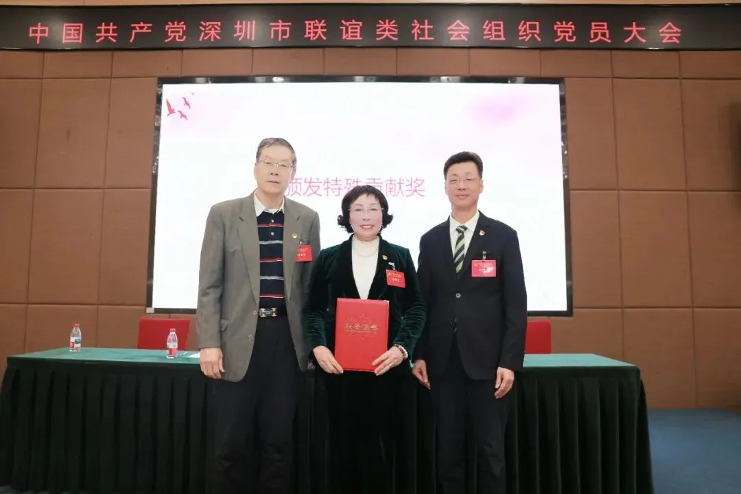 为感谢光荣卸任的孔爱玲同志,在担任上一届联合党委副书记兼纪委书记期间,对深圳市联谊类社会组织联合党委党建工作所作的贡献,大会还向孔爱玲书记颁发了“特别贡献奖”,表彰孔爱玲书记始终以高度的责任感和使命感扎根岗位、履职担当,为社会组织的党建工作筑牢了根基、绘就了蓝图。