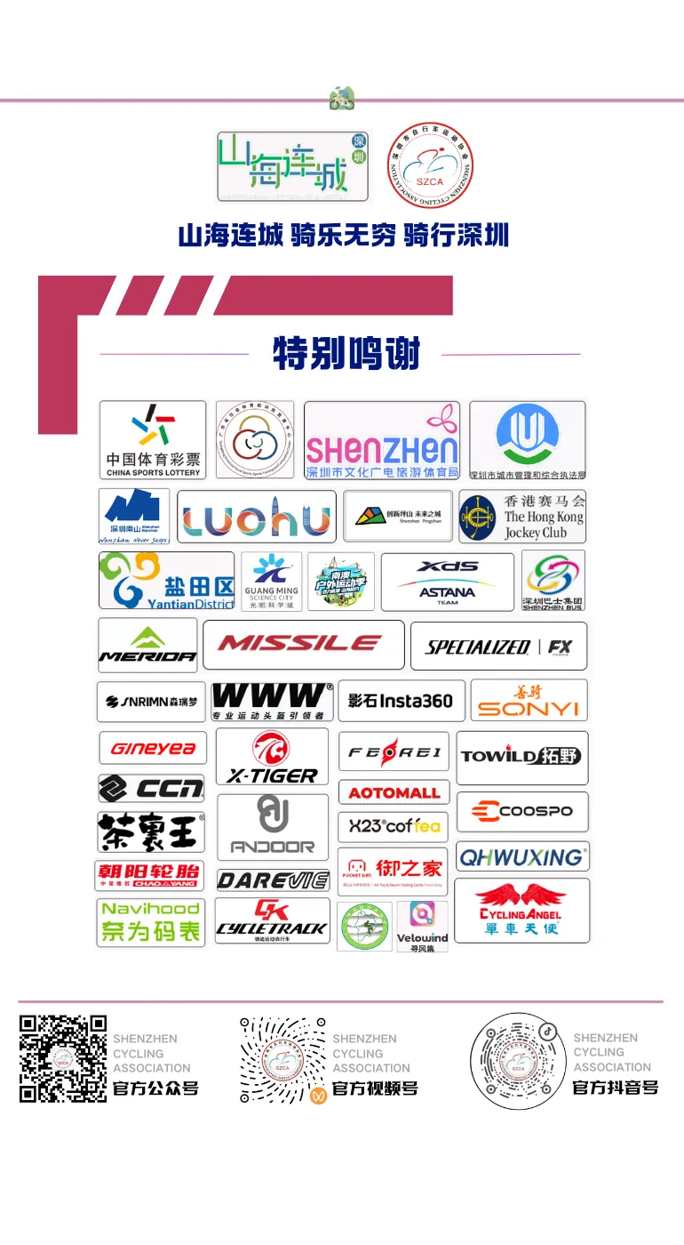 21、活动最新通知,将于“深圳市自行车运动协会”微信公众号公布。深圳市自行车运动协会及参与伙伴保留一切修改活动细则之最终决定权,参与者不得异议。