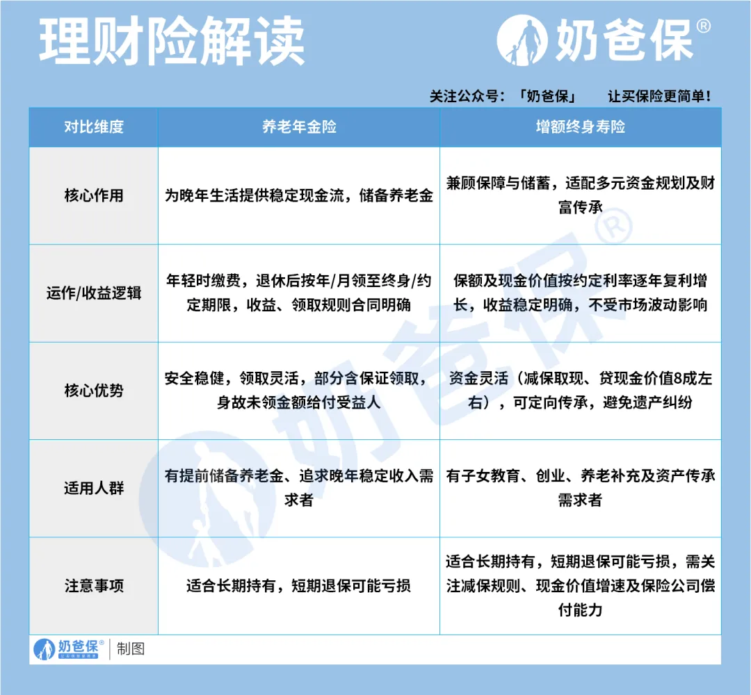 其中养老年金险和增额终身寿险,就是很合适的选择,能给家庭财富搭起一道安全防线。