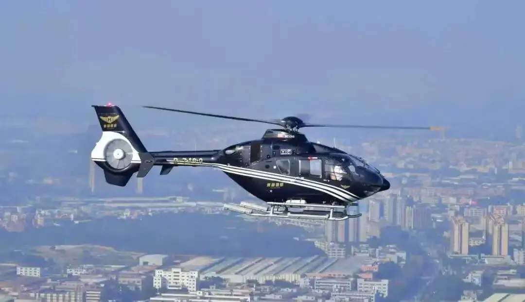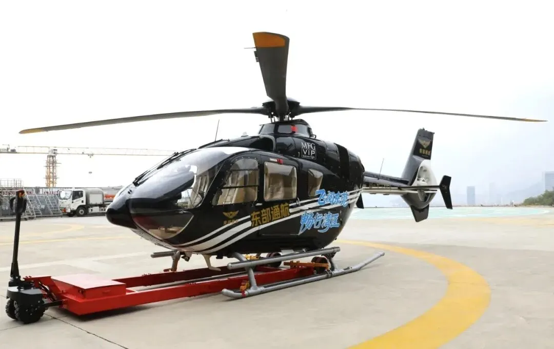 ▲东莞首批执飞的机型为空客H135直升机,以安静、安全、稳定著称,是同级别中最安静的机型之一