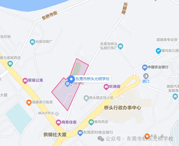 东莞市桥头光明学校是经东莞市教育局批准,于2002年创办的一所九年一贯制民办学校。为了办人民满意的教育,董事会不断加大投入,优化学校管理,改造校园环境,改善设备设施、优化师资队伍,深化教学改革,实施素质教育。