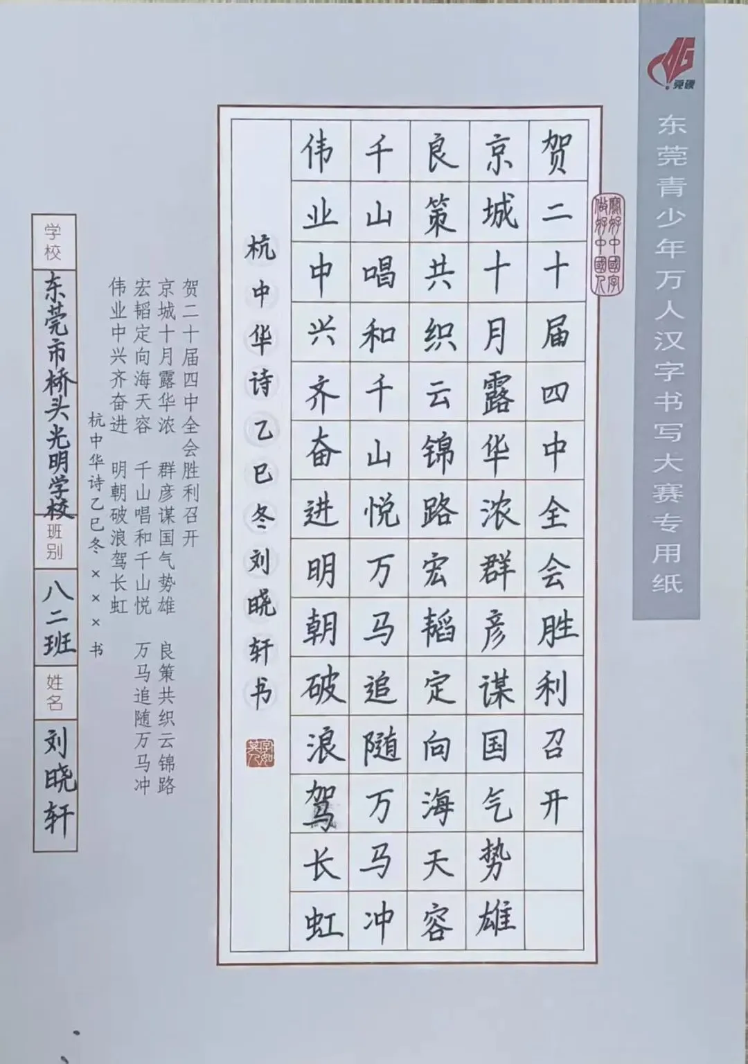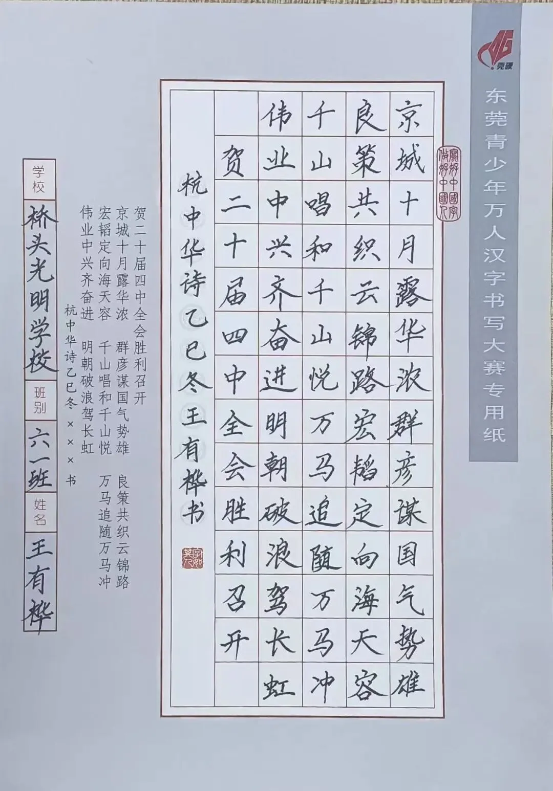 实施三字课堂:“钢笔字、粉笔字、毛笔字”,学校开设了写字课,每天下午放学前留出专门的时间全员暮练:每学期举行全校师生书写比赛活动。