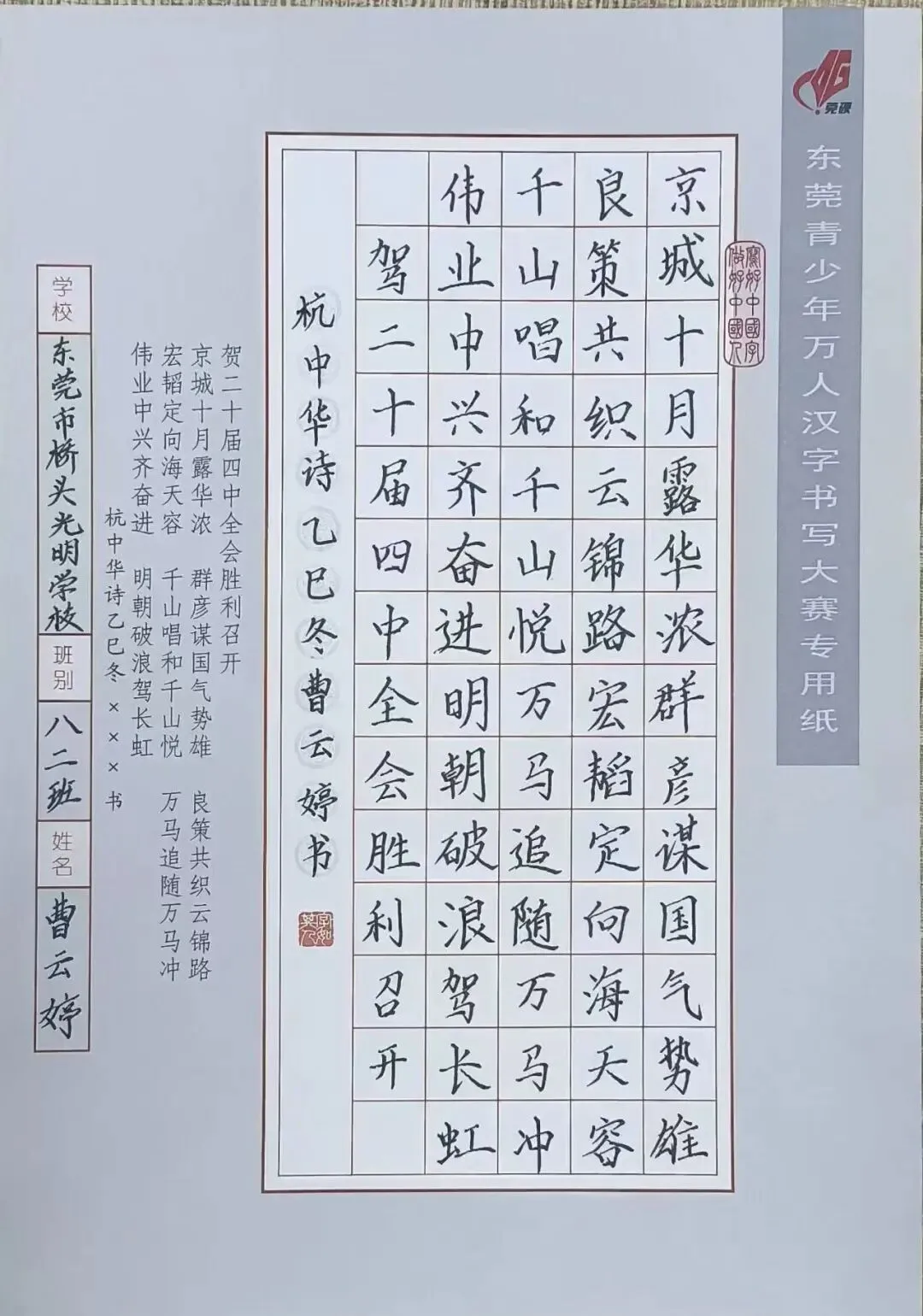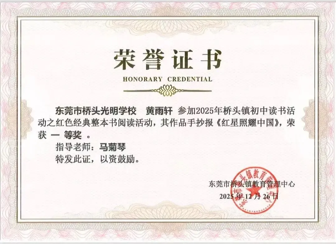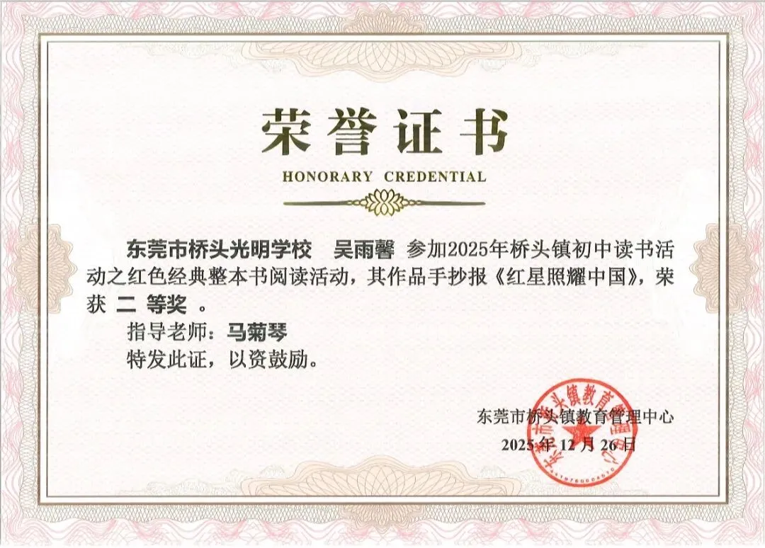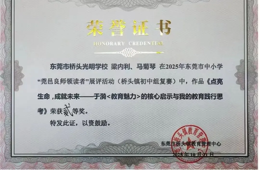 在上级教育部门的正确领导下,学校的教育教学质量和办学水平不断提高,取得了可喜的成绩,先后被评为“东莞市先进民办学校”、“广东省标准化学校”、“广东省规范化学校”。近三年来,全校师生在各级各类比赛中,荣获市、镇级一、二、三等奖达三百多人次。